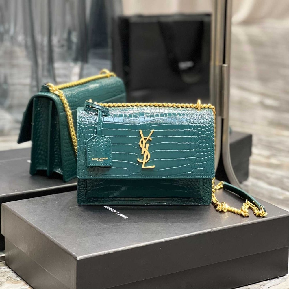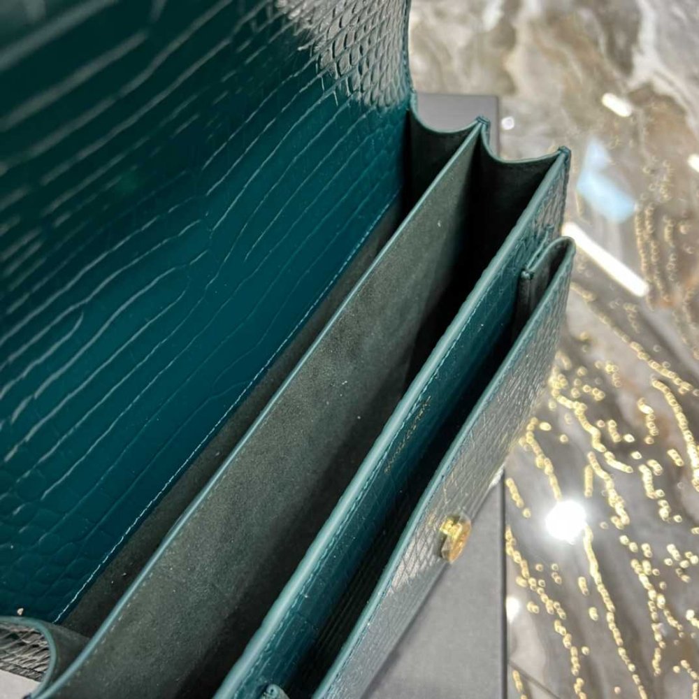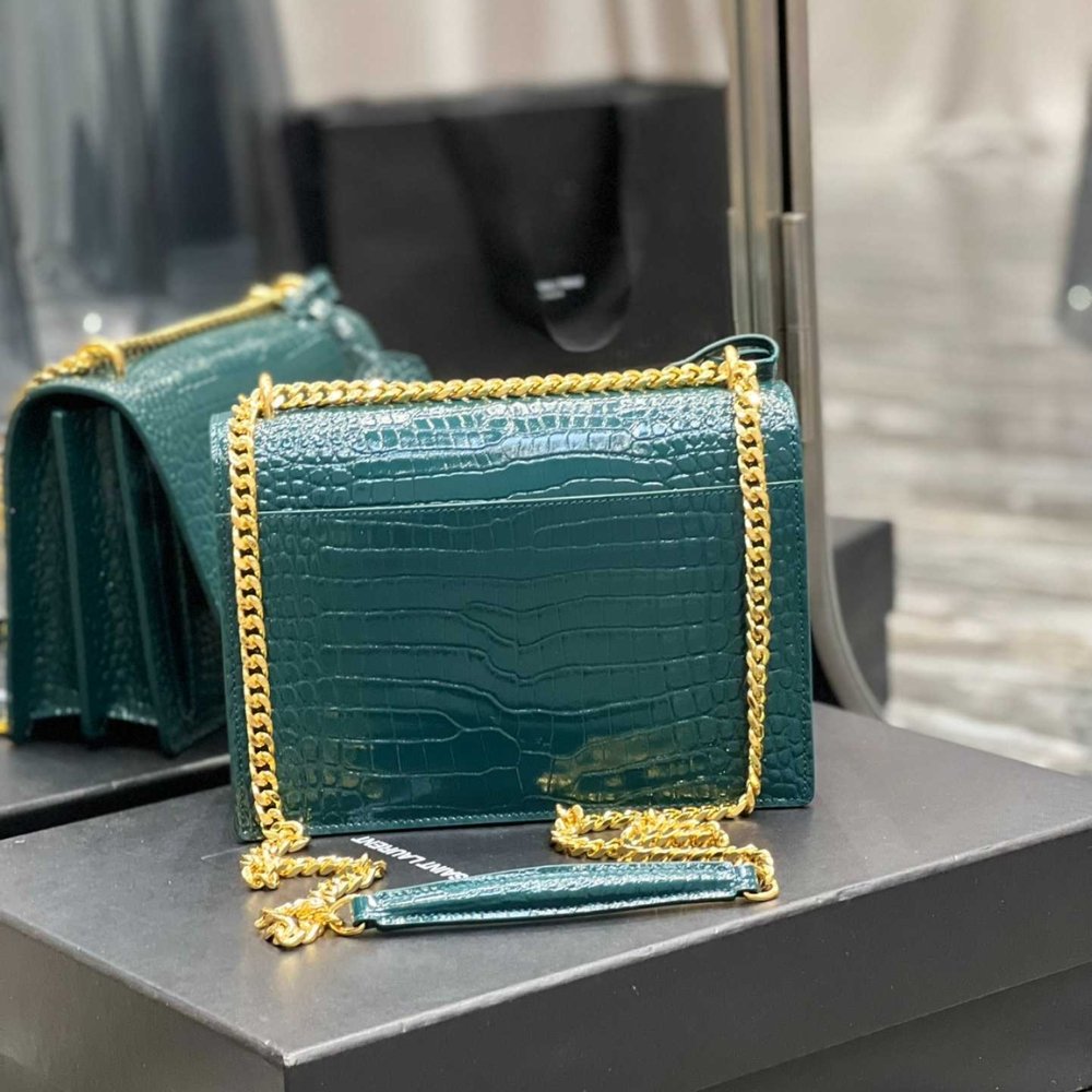 Saint Laurent Sunset Medium In Crocodile Embossed Leather Dark Green 22cm 442906DND0J3144