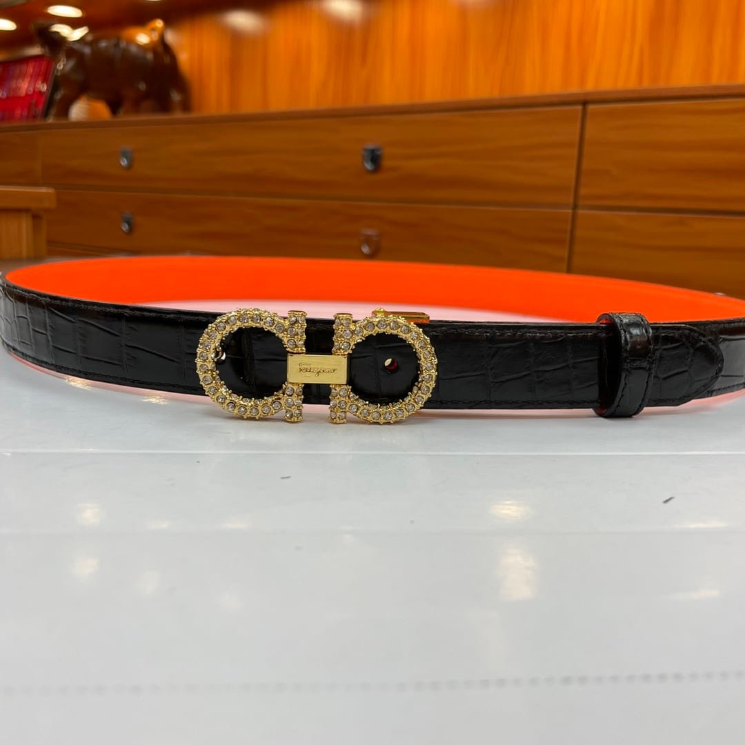 Salvatore Ferragamo Gancini Leather Belt With Gold Metal Pearls Buckle 2.5Cm