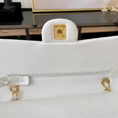 CHANEL CLASSIC MEDIUM HANDBAG WHITE 25CM A01112