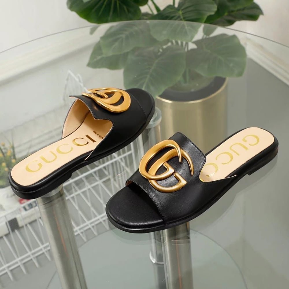 GUCCI PRINCETOWN GG SLIPPERS LEATHER BLACK