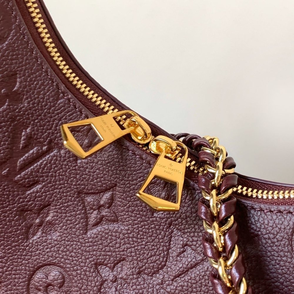 The classic Boulogne PM is reimagined for the season in a rich Grenat colorway that complements the sophisticated gold-toned hardware. Inspired by archival Louis Vuitton designs, this edition is crafted from Monogram Empreinte leather embellished with a braided chain that can be removed if desired.