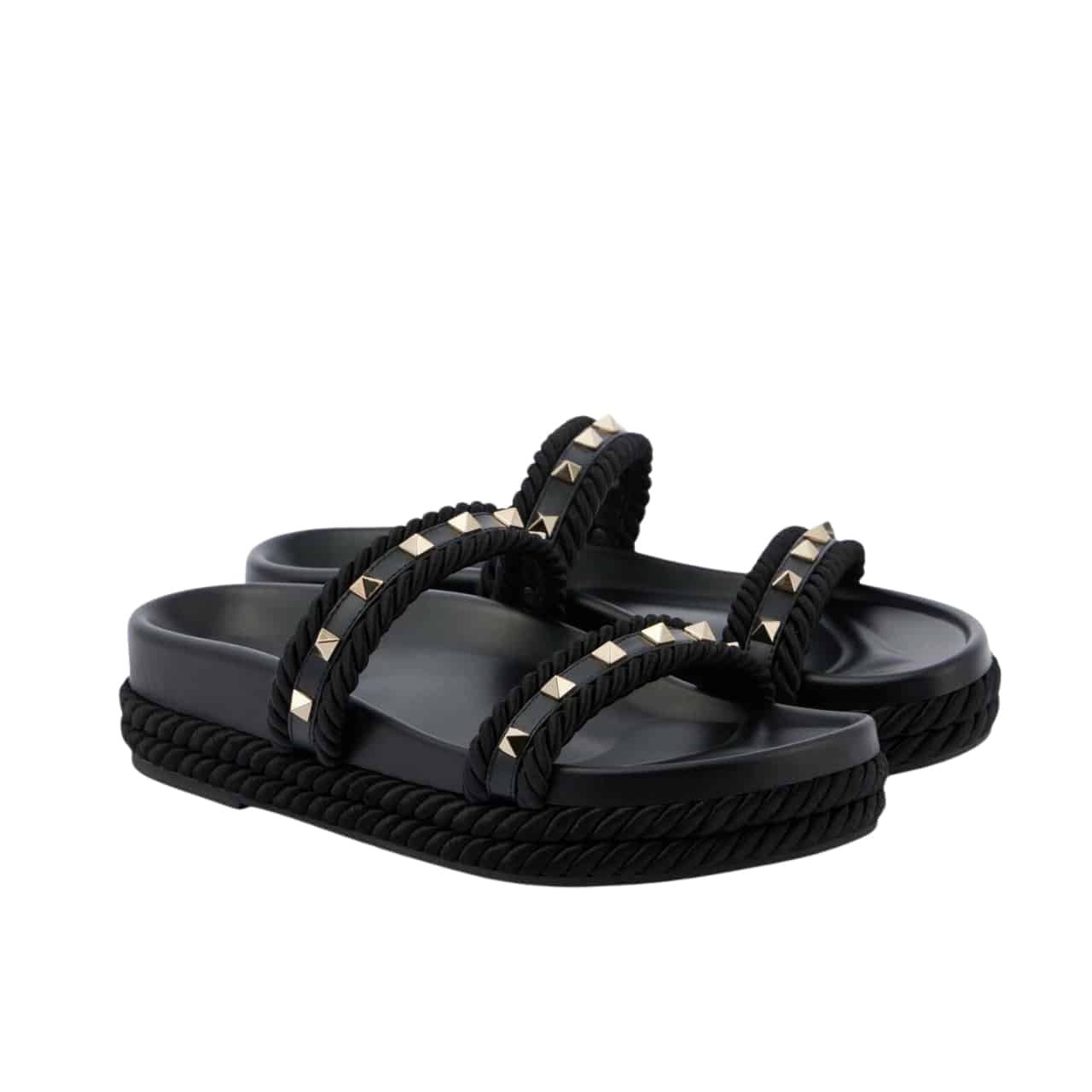 Valentino Garavani Rockstud Leather Espadrille Slide In Black 6W2S0Jr3Bae