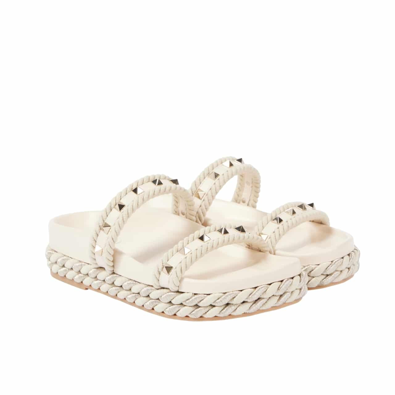 Be the first to review “Valentino Garavani Rockstud Leather Espadrille Slide In White” Cancel reply